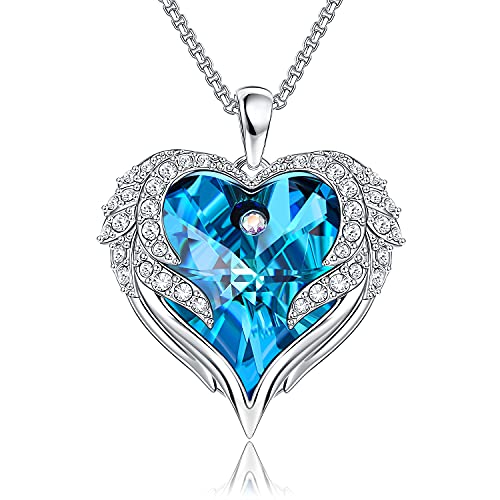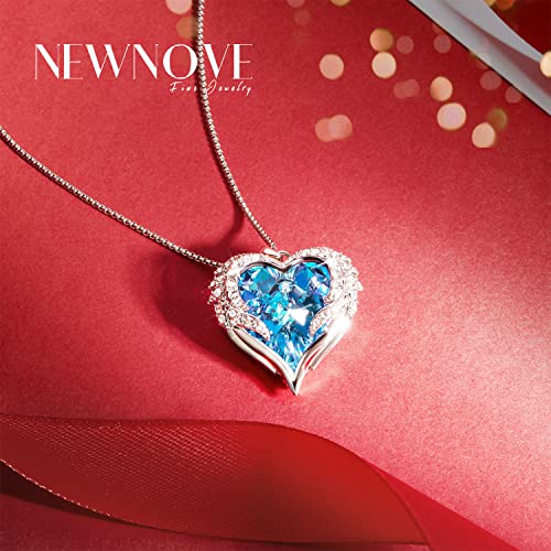 NEWNOVE - سلاسل كريستالية بتصميم قلب واجنحة الملاك للنساء كريستال