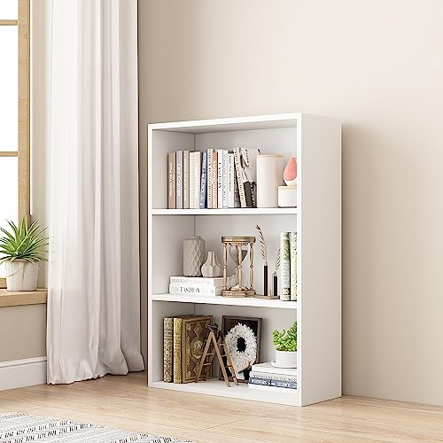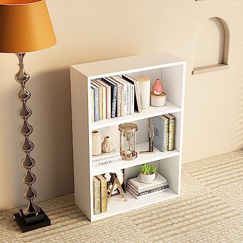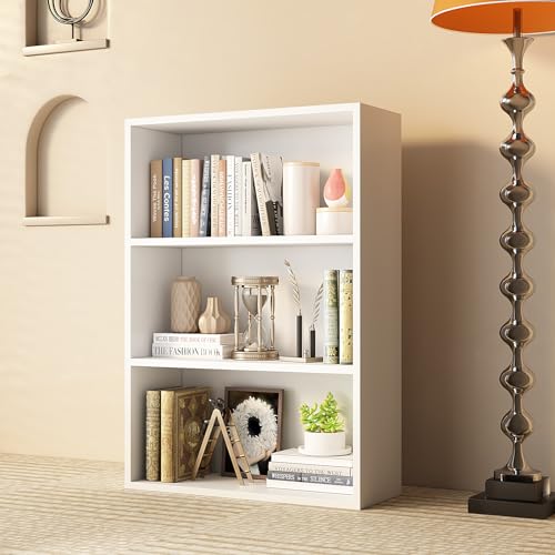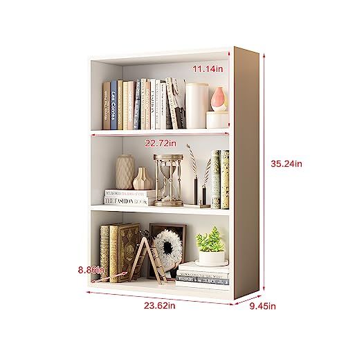 NEWSENDY - ارفف تخزين الكتب من 3 طبقات من نيوسيندي، خزانة كتب مفتوحة 35.24 انش، وحدة قائمة على الارض، خزانة كتب خشبية منظم تخزين للمنزل والمكتب وغرفة المعيشة وغرفة النوم، ابيض