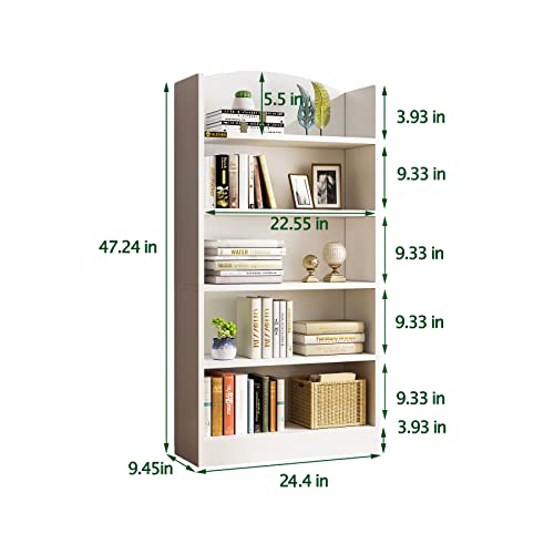 NEWSENDY - وحدة كتب خشبية قائمة بذاتها مكونة من 5 أرفف بطول 1.20 م لغرفة النوم والمكتب المنزلي والمكتبة وغرفة المعيشة من نيوسيندي، لون أبيض