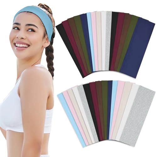NEWTGAN - أربطة للرأس قماشية سميكة ومرنة للتمرين للنساء، غير قابلة للانزلاق، رباطات شعر عصرية من قماش قطني ناعم وحريري لشعر النساء مخصصة لليوجا والجري والرياضة من نيوتجان، عبوة من 30 قطعة