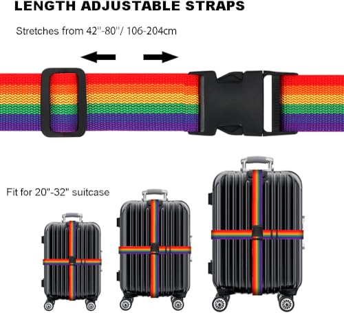 - أحزمة قابلة للتعديل: طول السوار: 1.06 - 2.04 متر؛ عرض الحزام: 3.8 سم؛ حزام السفر العالمي مناسب لشنطة السفر مقاس 51 سم - 81 سم. مناسبة لحقيبة السفر وحقيبة الأمتعة وحقيبة الظهر وما إلى ذلك.