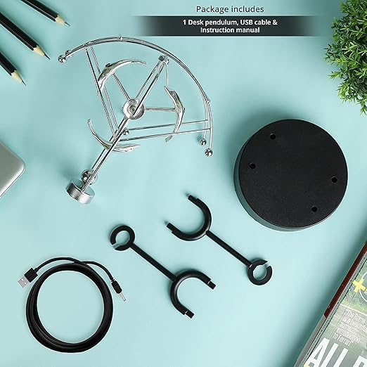 Generic - لعبة الكترونية دائمة الحركة بندول نيوتن دوار دوار على شكل دولفين مع كيبل USB وحوامل قبضة قوية لعلوم الفيزياء، اداة ديناميكية لتخفيف التوتر، ديكور الطاولة