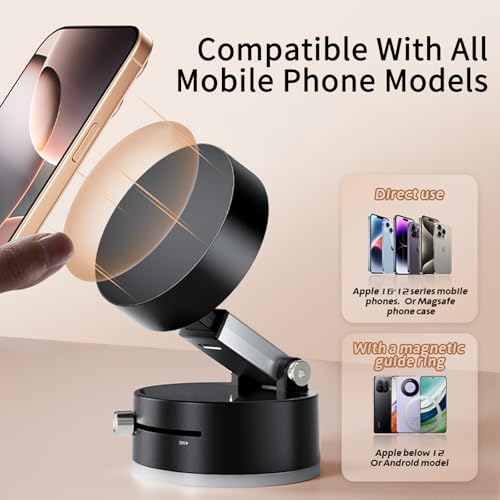 - حامل هاتف مغناطيسي مطور بتفريغ الهواء: يتميز حامل الهاتف المحمول بقاعدة تثبيت لاصقة بقوة محسنة وآلية قفل ملتوية للحصول على التصاق فائق بفضل تقنية الشفط المبتكرة والقاعدة الجديدة المرنة للغاية، يلتصق الحامل بأمان بالأسطح الملساء كلما كانت الصدمات أقوى (على سبيل المثال عند القيادة)، كلما كان المقبض أكثر إحكامًا - حامل الهاتف المغناطيسي المثالي للسيارة