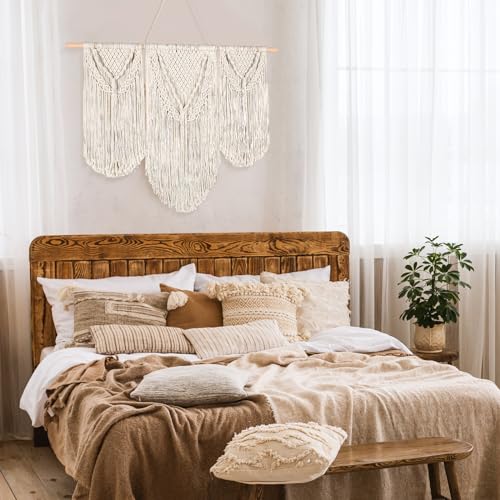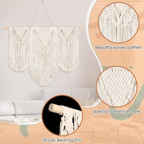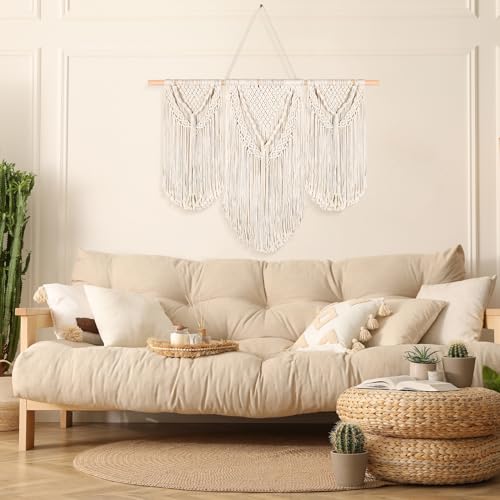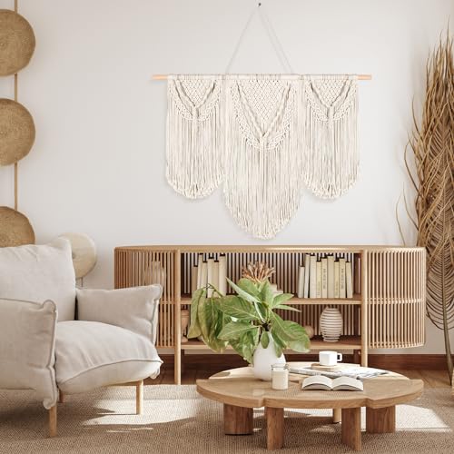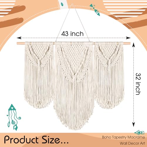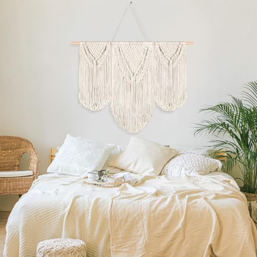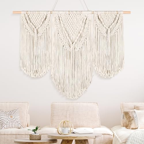 Newwiee - نيووي مكرمية كبيرة معلقة على الحائط 43 انش × 32 مع قضيب ديكور بوهيمي ستائر لتزيين المنزل وغرفة المعيشة وحفلات الزفاف والشقة تصميم مثلث .