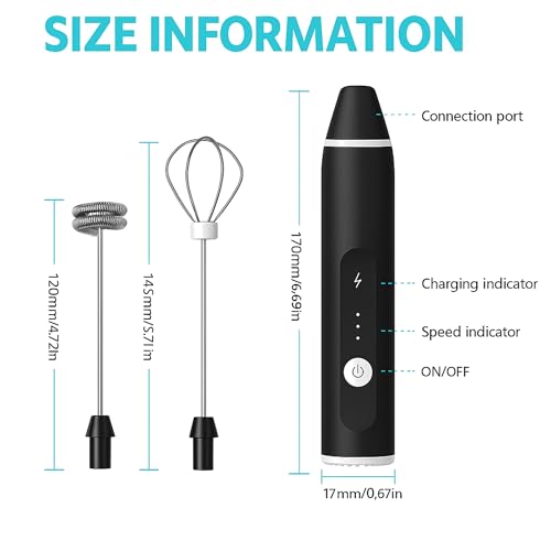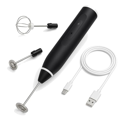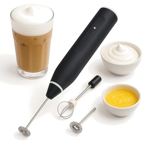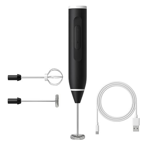 Generic - مضرب نكسافيه كهربائي يدوي USB قابل لإعادة الشحن، 3 سرعات، خافق بيض وحليب وكريمة برأس حلزوني من الستانلس ستيل (أسود)