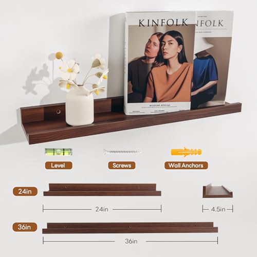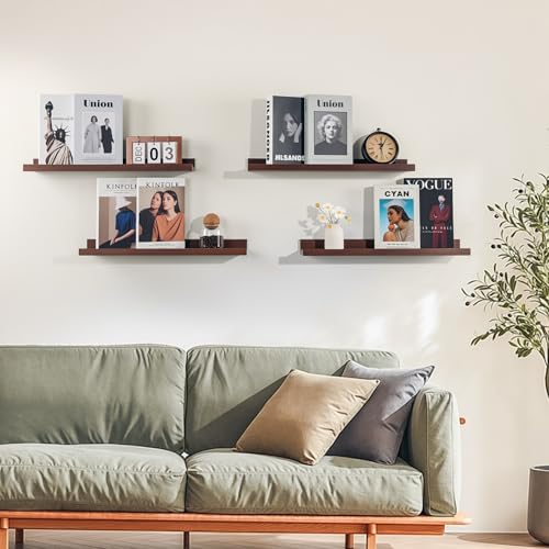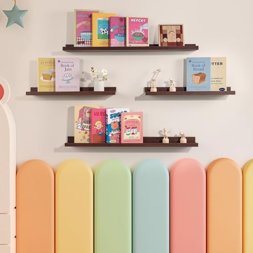 NEXHOME PRO - أرفف معلقة للحائط، رف كتب للأطفال يثبت على الحائط لغرفة المعيشة وغرفة النوم والحمام والمطبخ، سهل التركيب من نيكسهوم برو، مجموعة مقاس 11 سم، لون بني (Walnut)