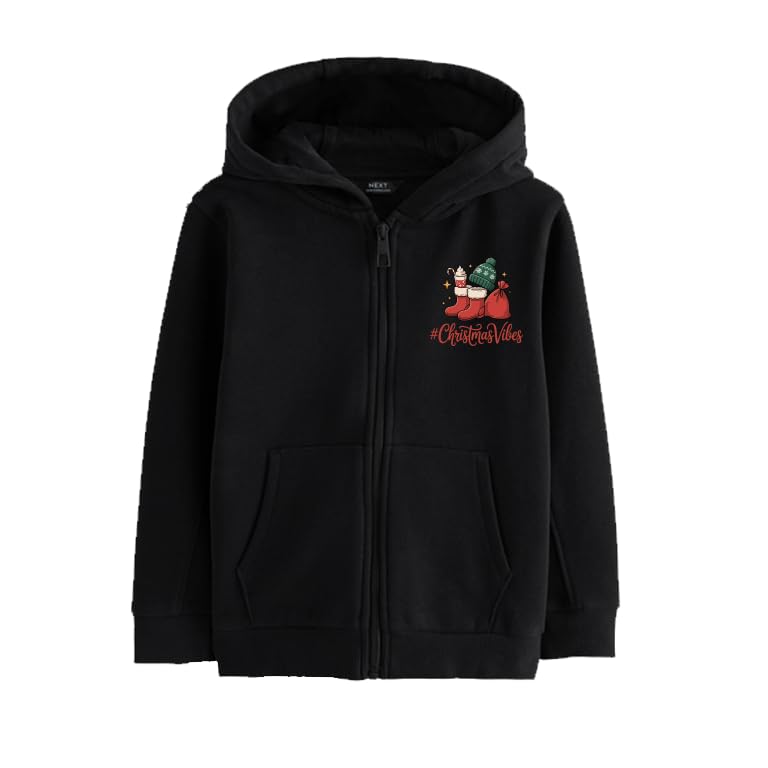 Generic - سويت شيرت بغطاء للرأس وسحاب من نيكست كريسماس فايبس، مزيج من القطن الاسود، سويت شيرت بنمط عطلة مع جيوب امامية وطباعة احتفالية (3-6 سنوات)