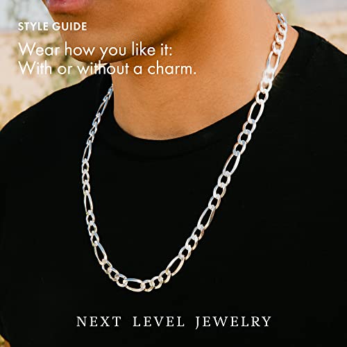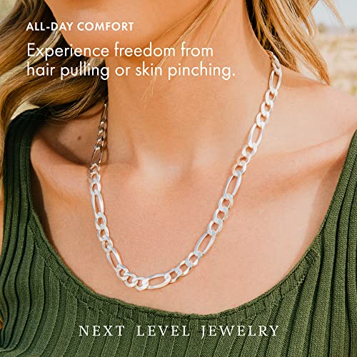 Next Level Jewelry - نيكست ليفل جولري سلسلة قلادة فيجارو من الفضة الاسترلينية الصلبة الاصلية .925 اي تي برولوكس 2 ملم - 10.5 فضية للرجال والنساء بدون تكتل ليست ضعيفة قوية ومتينة صنعت في ايطاليا معدن