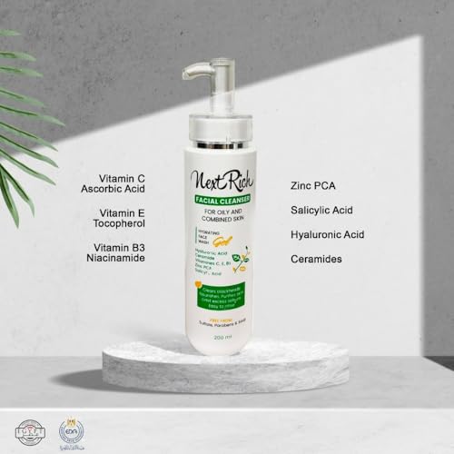 Next Rich - جل منظف الوجه نيكست ريتش 200 مل - للبشرة الدهنية والمختلطة - للتحكم في الزيوت وعلاج حب الشباب | خالٍ من البارابين والكبريتات والصابون