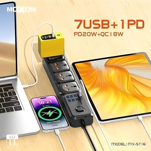 - منافذ USB متعددة: تدعم 7 منافذ USB مع تقنية الشحن الذكي لشحن الأجهزة المحمولة بسرعة وأمان.