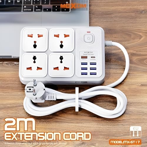Next store - مشترك كهرباء من Next Store 12 فى 1 بسعة 2500W مع 4 مداخل كهربائية، 7 منافذ USB، منفذ1 Type-C PD 20W مع مفتاح تحكم رئيسي –,حماية ذكية, تحكم سهل, كابل مرن