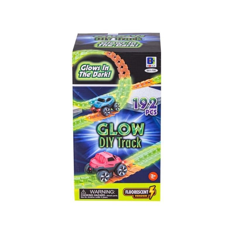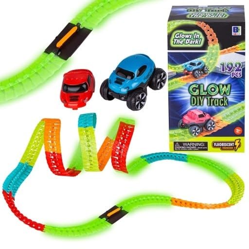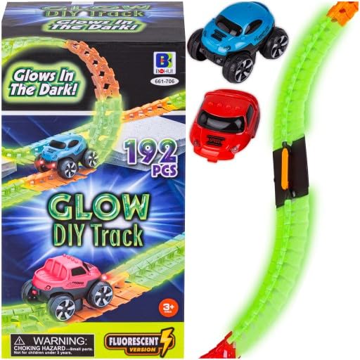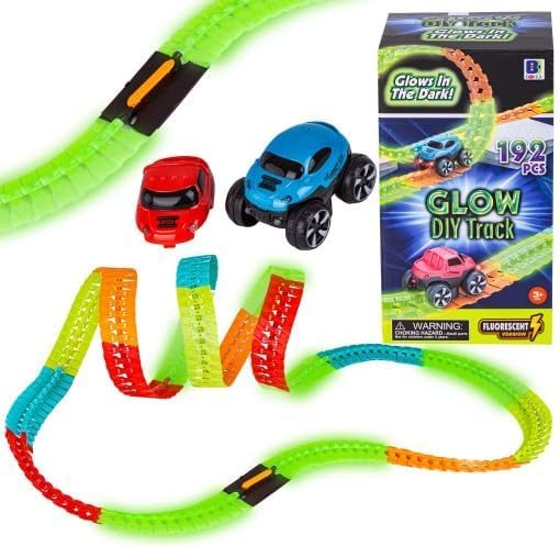 Next store - مجموعة مسار سباق مضيء في الظلام – منNext Store مكونه من 192 قطعة مع سيارات سباق مرنة – تصميم DIY ممتع للأطفال