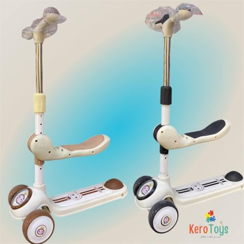 - [ وضعيتان للركوب مع مقعد قابل للطي : ] يعمل السكوتر كوضعية جلوس أو وقوف حسب عمر الطفل وراحته، بفضل المقعد القابل للطي والإزالة. مثالي لمراحل التعلّم المبكرة وللأطفال الذين يفضلون التنقل براحة أكثر.