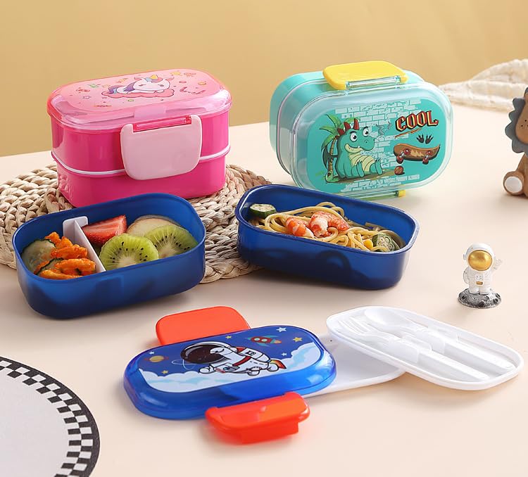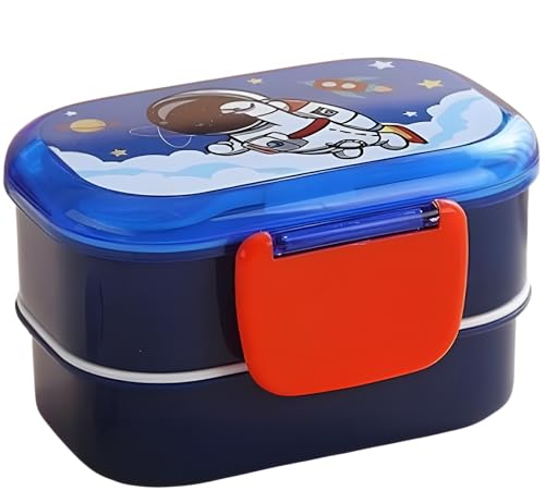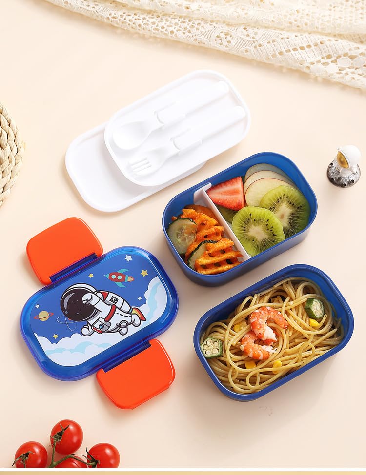Next store - علبة طعام بلاستيك طبقتين من Next Store – صندوق غذاء بغطاء محكم مع فاصل، ملعقة وشوكة – آمن للمايكروويف ومثالي للطلاب والعمل (ازرق)