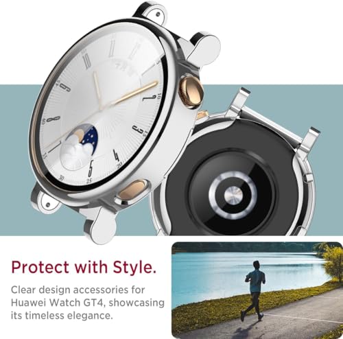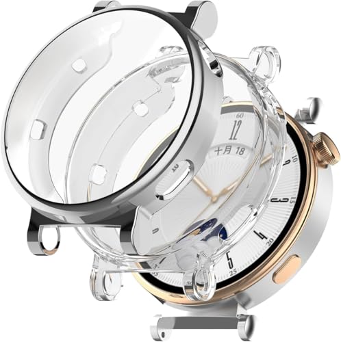 Next store - جراب حماية ناعم من نيكست ستور مصنوع من البولي يوريثين المقاوم للحرارة لساعة هواوي GT4 مقاس 41 ملم مع واقي شاشة بتغطية كاملة، مضاد للخدش والصدمات، عبوة مكونة من 2 قطعة (فضي وشفاف)