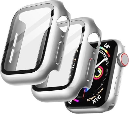 Next store - حافظة حماية ساعة من جميع الجوانب، غطاء زجاج مقوى مدمج عالي الحساسية مع شاشة حماية متوافقة مع ساعة اي ووتش SE (2022/2020) / سيريز 4 5 6 40 ملم من نيكست ستور، عبوة من قطعتين، فضي