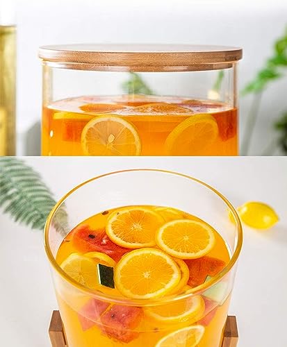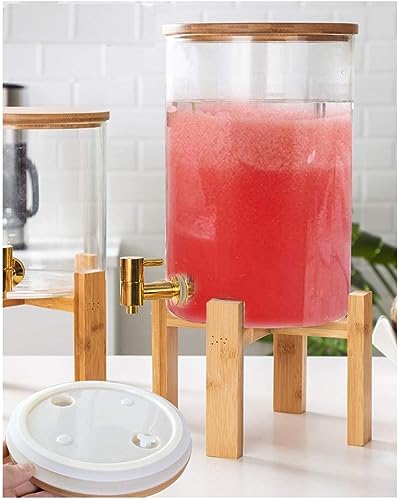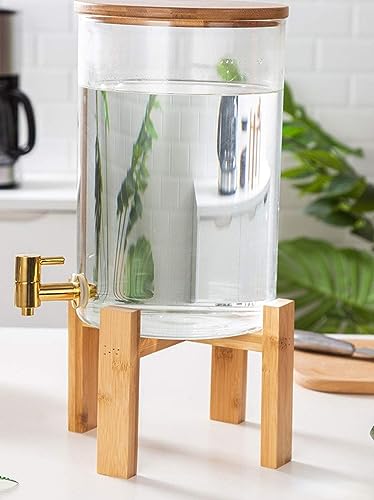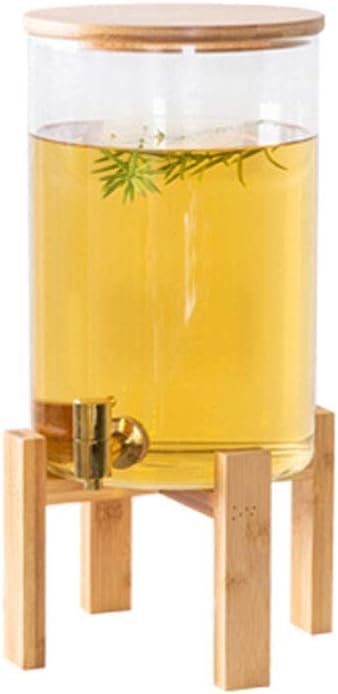 Next store - حافظة مشروبات زجاجية 2600 مل من Next Store مع حامل خشبي وصنبور ستانلس ستيل – إبريق زجاج حراري للمشروبات الساخنة والباردة والعصائر والشاي المثلج والبنش