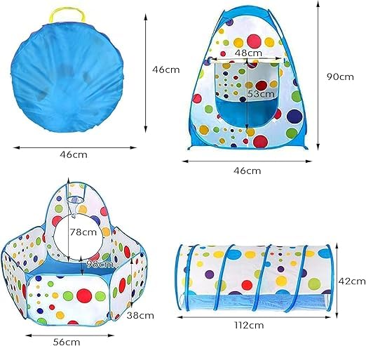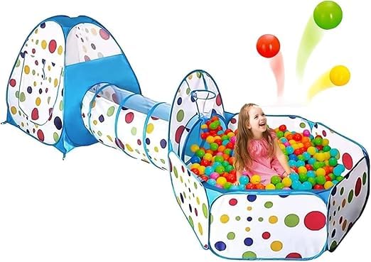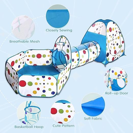 - [تصميم متعدد الاستخدامات:] : توفر هذه الخيمة المميزة نفقًا وحوضًا أساسيًا لفرص لعب متنوعة، مما يسمح للأطفال بالاستمتاع بتجارب متعددة تنمي مهاراتهم الحركية والإبداعية في نفس الوقت.
