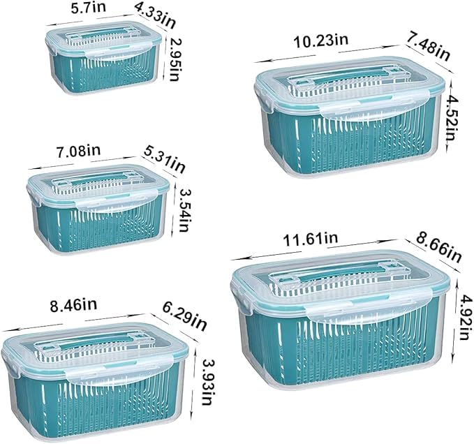 - [تصميم ذكي متعدد الوظائف:] يحتوي كل صندوق على مصفاة داخلية قابلة للإزالة تساعد في تصفية الماء من الخضروات أو اللحوم، مما يحافظ على نضارتها لأطول وقت ممكن. تصميم مثالي لتوفير الوقت أثناء الطهي والتنظيف.