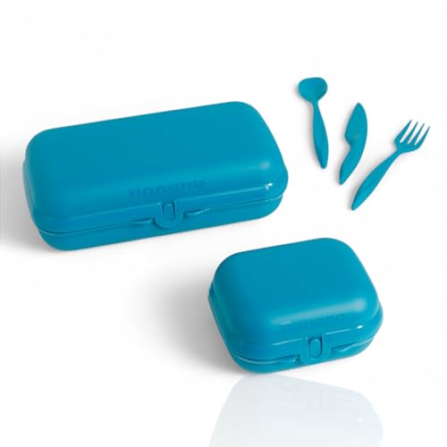 - [أدوات طعام مرفقة] : الطقم يشمل أدوات طعام (شوكة + معلقة + سكين) بنفس لون العلب، لتجربة عملية أنيقة ومتكاملة أثناء التنقل في المدرسة، النادي أو العمل.