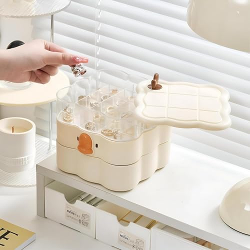 Next store - منظم مجوهرات من 3 طبقات من Next Store حامل أكريليك شفاف مع غطاء شفاف لتخزين دلايات، حلقان، إكسسوارات بطريقة منظمة وسهلة الوصول بأبعاد 15 × 13.5 سم