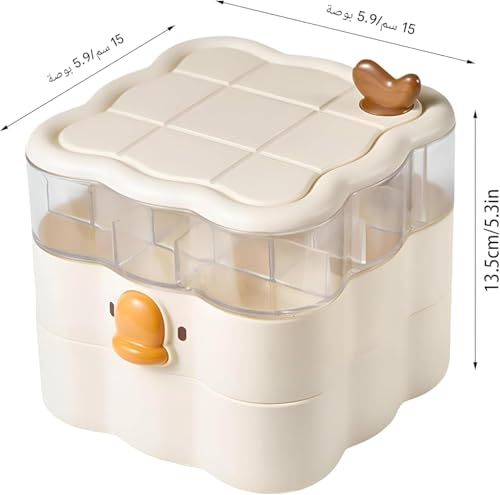 - حجم مناسب لمساحات مختلفة: بأبعاد 15 × 13.5 سم، مناسب لوضعه على التسريحات، الحمام، أو خزائن صغيرة، مع تصميم مدمج يوفر المساحة دون التأثير على وظائف التخزين.