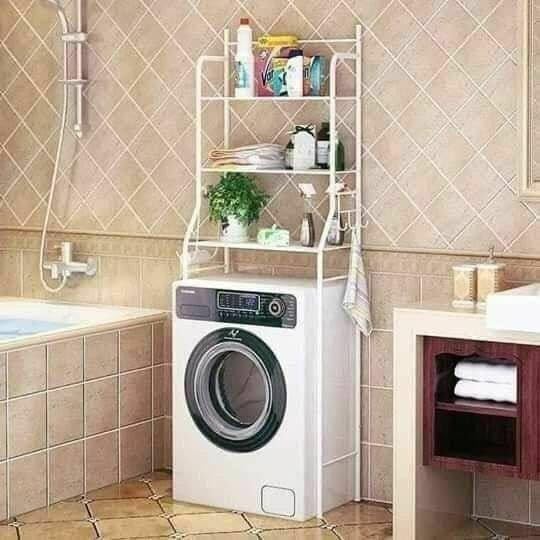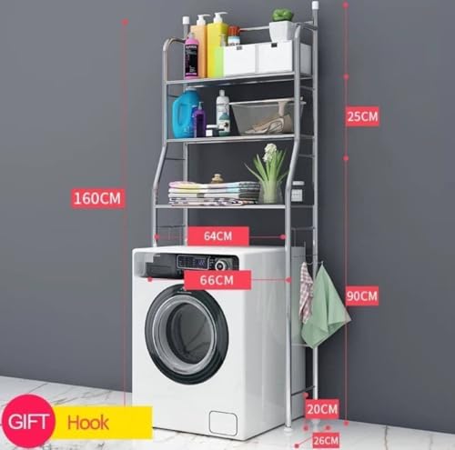 - [تصميم موفر للمساحة] : حامل تخزين معدني بثلاث طبقات يستغل المساحة فوق الغسالة لتنظيم مستلزمات الغسيل والحمام بشكل مرتب وفعال.