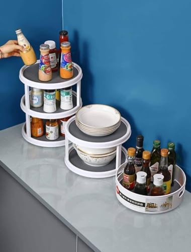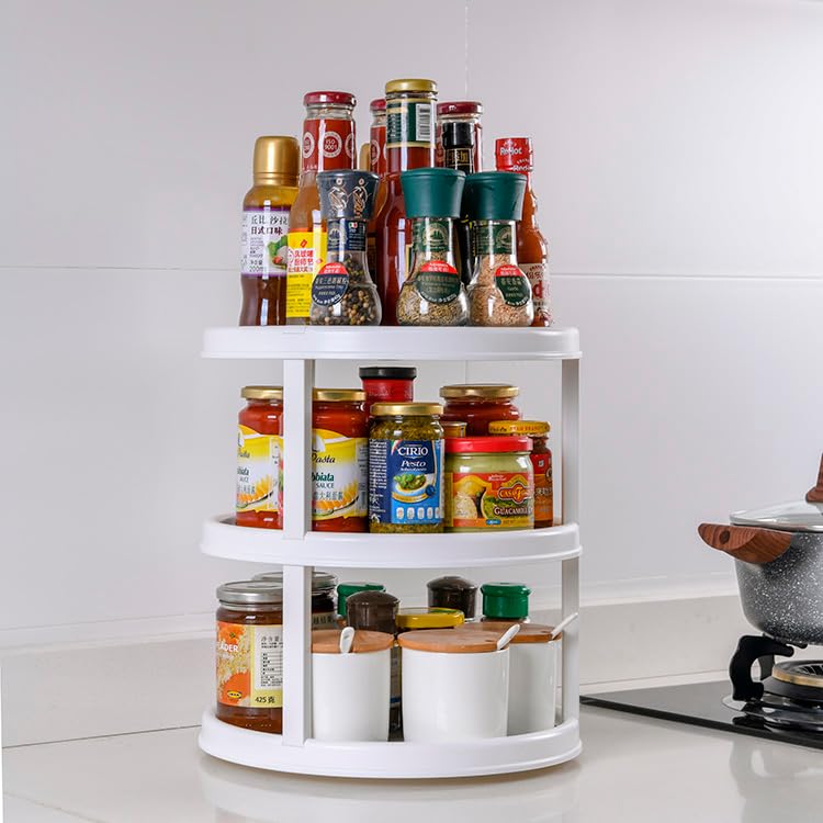 - [تنظيم متعدد الاستخدامات] : هذا الرف الدوار يمكن استخدامه في أكثر من مكان داخل المنزل سواء لترتيب أدوات التجميل أو أدوات المطبخ أو لمستلزمات الثلاجة. يمنحك حرية ترتيب ما تريدين في مكان واحد دون الحاجة لعدة منظمات مختلفة، وهو ما يوفر مساحة كبيرة ويجعل التنظيم أسهل وأسرع.