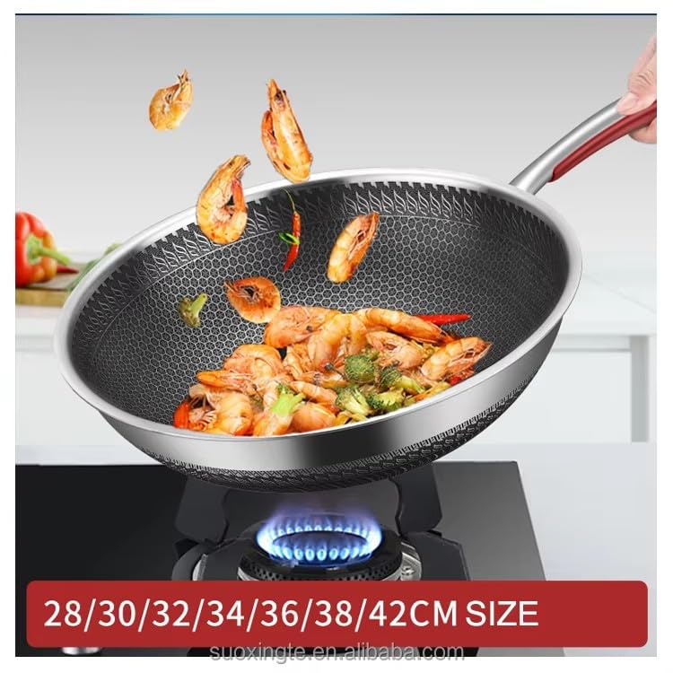 - [خامة ستانلس ستيل 304 عالية الجودة]: مصنوعة من خامة ممتازة مقاومة للصدأ توفر أداءً قويًا في الطهي مع تحمل عالي لدرجات الحرارة على مختلف أنواع البوتاجازات.
