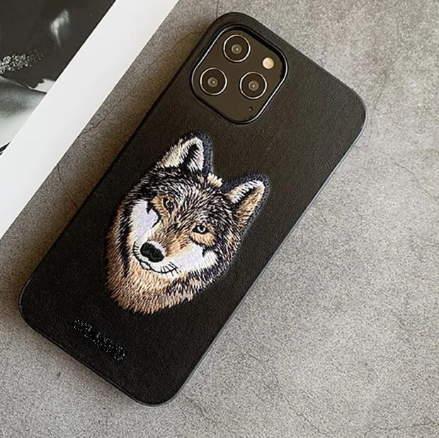 Next store - جراب حماية جلد بملمس بارز وتصميم تطريز ثلاثي الأبعاد 3D بنمط رأس حيوان لموبايل ايفون 11 من نكست ستور - ذئب