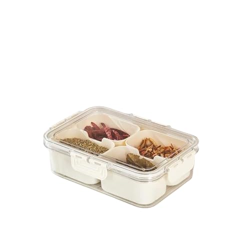 Next store - علبة توابل وتخزين وجبات خفيفة 4 مقصورات محكمة الإغلاق من Next store ، تصميم قابل للتكديس مع مقسمات وغطاء ومقبض، صينية تقديم للخضروات والمكسرات سهلة الحمل