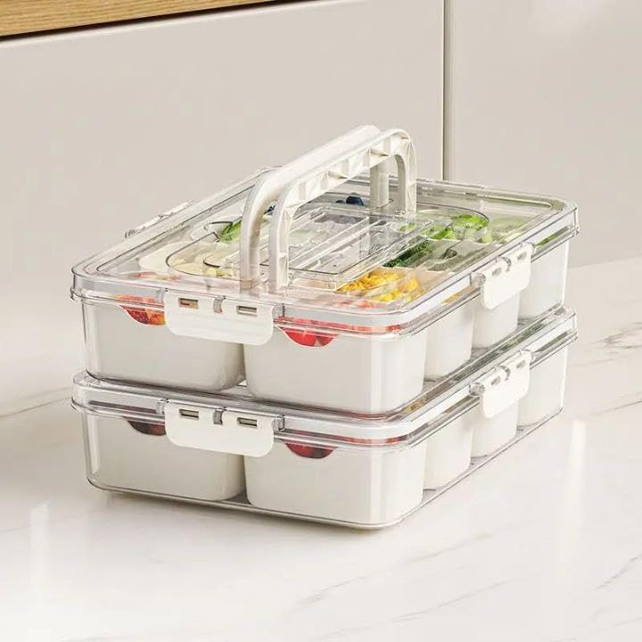 - [تصميم متعدد الاستخدامات] : علبة عملية بتقسيمات داخلية مثالية لتخزين التوابل، الوجبات الخفيفة، المكسرات، أو الخضروات، لتقديم منظم وأنيق على الطاولة أو أثناء الضيافة.