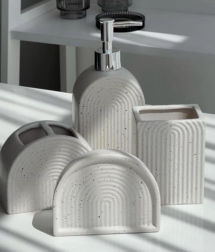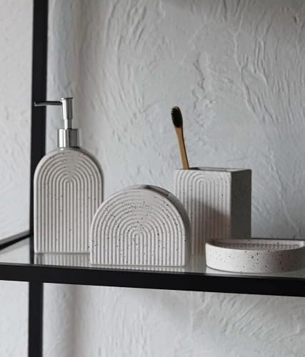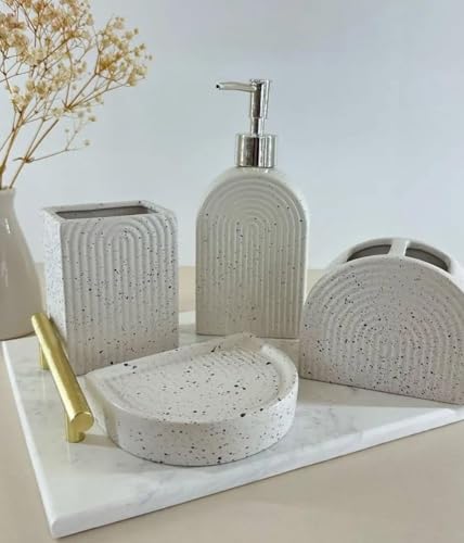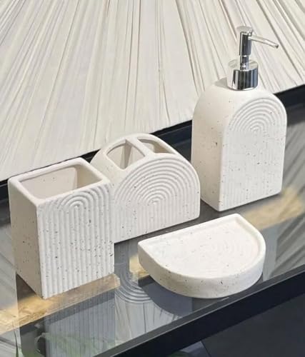 Next store - طقم حمام 4 قطع بورسلين أنيق يشمل موزع غسول وصحن صابون وحامل فرشاة أسنان وكوب – تصميم عصري عملي من Next Store لحمام مرتب وفاخر