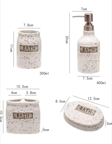 Next store - طقم حمام بورسلين فاخر مكوّن من 4 قطع: ديسبنسر صابون، حامل فرش أسنان، حامل أدوات حلاقة وصابونة، تصميم أنيق لتنظيم الحمام وإضافة لمسة ديكور حديث من Next Store