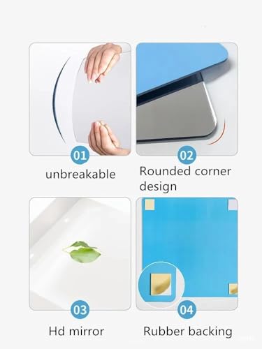 - [لاصق مزدوج للتركيب السهل] : مزودة بلاصق خلفي قوي مزدوج الوجه، يمكنك تثبيت المرآة بسهولة على الجدران أو الأبواب أو الأسطح المسطحة دون الحاجة إلى أدوات.
