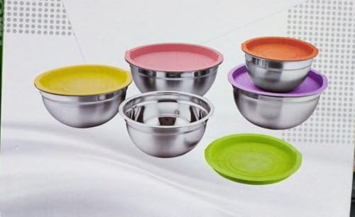 - [تصميم عملي ومتعدد الاستخدامات:] طقم مكون من 5 بولات استانلس يمكن استخدامه كعجان، أو لتتبيل اللحوم والدواجن والأسماك، أو لتخزين الطعام في الثلاجة بكل سهولة.