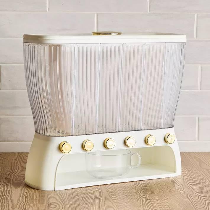 - [سهولة الاستخدام:] مزود بأزرار متينة لتوزيع الكمية المطلوبة من الحبوب أو البقوليات بسرعة دون فوضى.