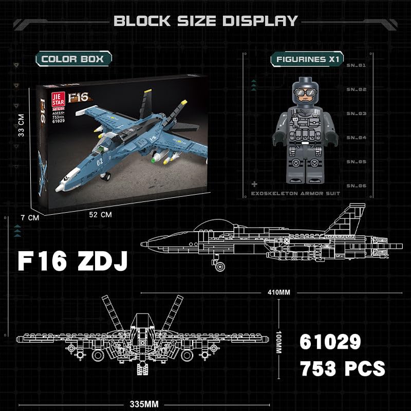 - [نموذج طائرة مقاتلة واقعي :] يتضمن الطقم 753 قطعة لبناء طائرة مقاتلة دقيقة التفاصيل، مما يتيح للأطفال بناء نموذج محاكاة لطائرة عسكرية.
