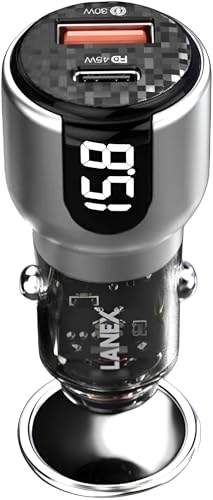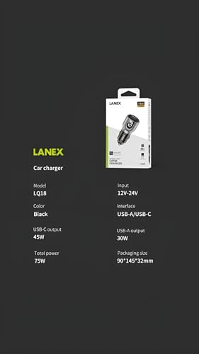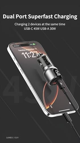 Next store - شاحن سيارة بقوة 75 واط -LQ18 - مع منفذين -من Next store – مخرج Type-C بقوة 45 واط + USB بقوة 30 واط، شاشة رقمية، دعم PD3.0 وQC3.0، شحن سريع وآمن للهواتف والأجهزة الذكية