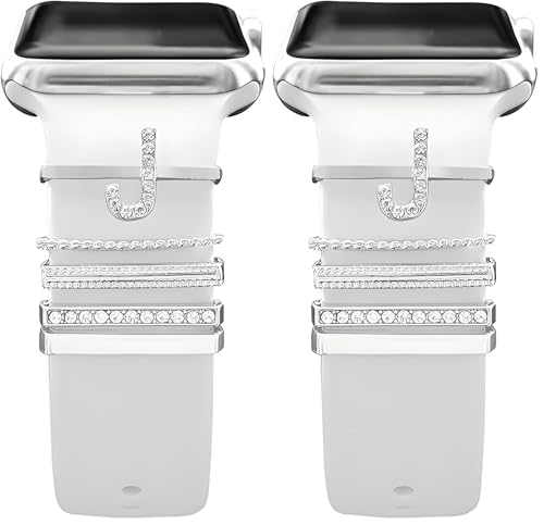 Next store - اكسسوارات متجر نكست متوافقة مع اساور ساعة ابل الترا/8/7/اس اي/6/5/4/3/2/1، جالكسي ووتش 5/4 كلاسيك/اكتيف، اكسسوارات الاسم بالحروف الاولية للنساء والفتيات (بدون سوار) (J) (عبوة من قطعتين)