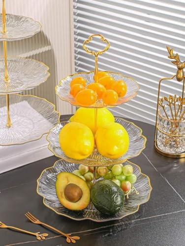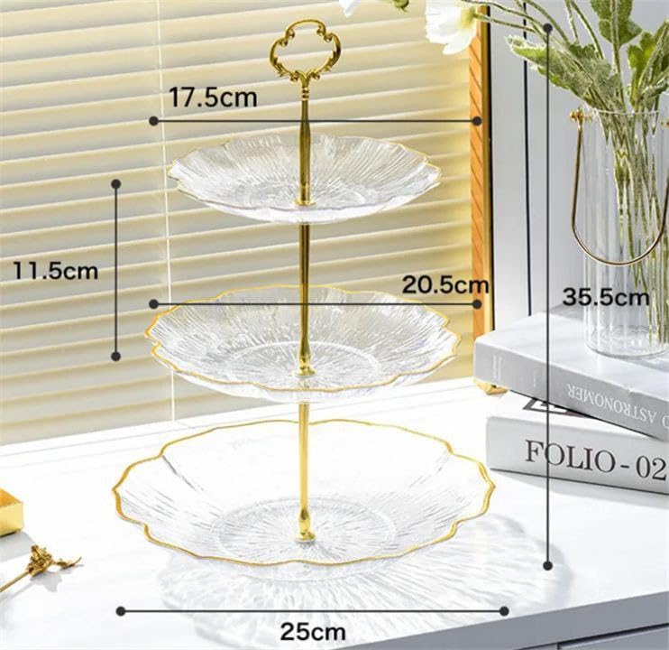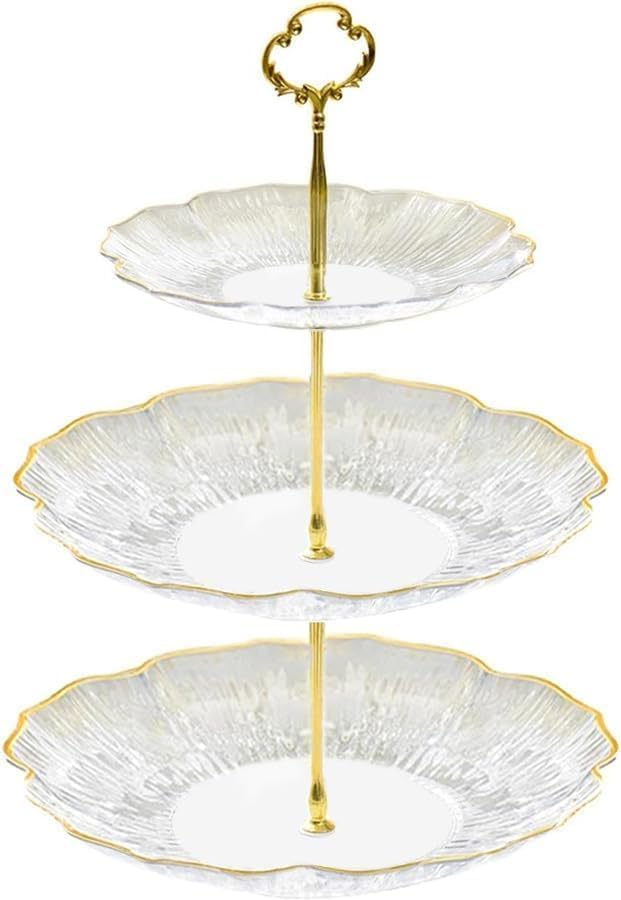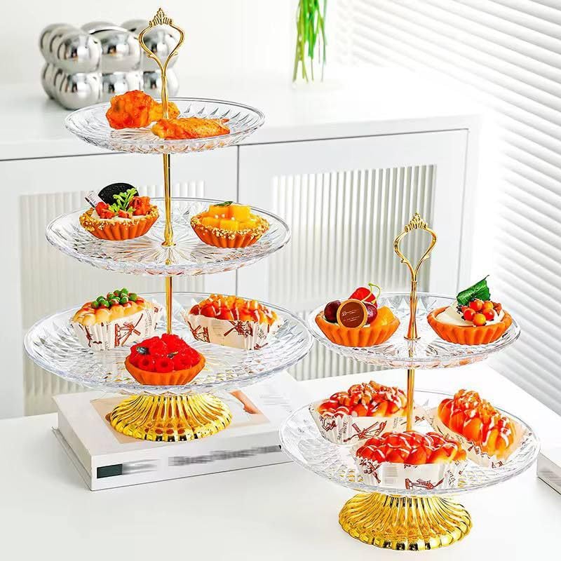 Next store - شيالة حلويات أكريليك 3 أدوار بتصميم أنيق وقاعدة ذهبية، مثالية للكحك والبيتي فور والشكولاتة — عرض راقٍ للضيافة والحفلات من Next Store (شفاف)