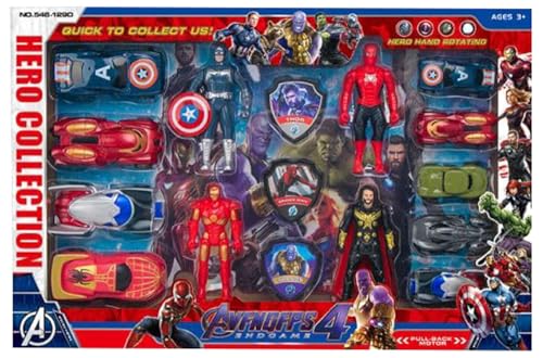 Next store - مجموعة سيارات من Next Store أبطال الأكشن - 14 قطعه معدنية مع شخصيات الأبطال الخارقين، لعبة ممتعة للأطفال، تصميم واقعي، مثالية لهواة التجميع، هدية رائعة للصغار والكبار.