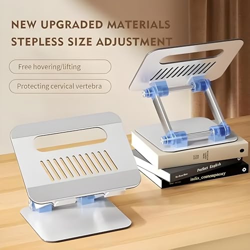 - [ مرونة في التعديل حسب رغبتك ]: يأتي الحامل بمفاصل قابلة للتعديل تتيح لك ضبط الارتفاع والميل بسهولة لتناسب وضعية الجلوس المريحة لك. مثالي لتقليل آلام الرقبة والكتف وتحسين وضعية الجسم أثناء العمل أو الدراسة. يمكنك تخصيص الزاوية المثالية للكتابة أو المشاهدة أو مكالمات الفيديو بكل سلاسة وراحة.
