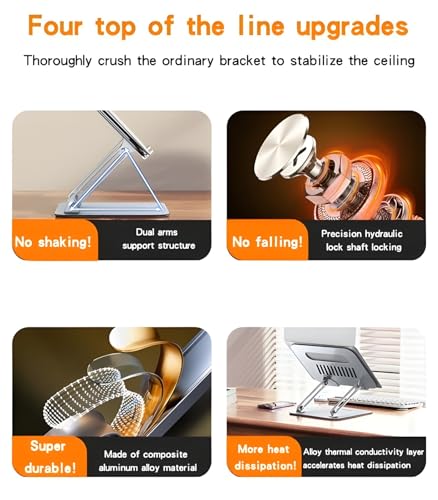 - [ مرونة في التعديل حسب رغبتك ]: يأتي الحامل بمفاصل قابلة للتعديل تتيح لك ضبط الارتفاع والميل بسهولة لتناسب وضعية الجلوس المريحة لك. مثالي لتقليل آلام الرقبة والكتف وتحسين وضعية الجسم أثناء العمل أو الدراسة. يمكنك تخصيص الزاوية المثالية للكتابة أو المشاهدة أو مكالمات الفيديو بكل سلاسة وراحة.
