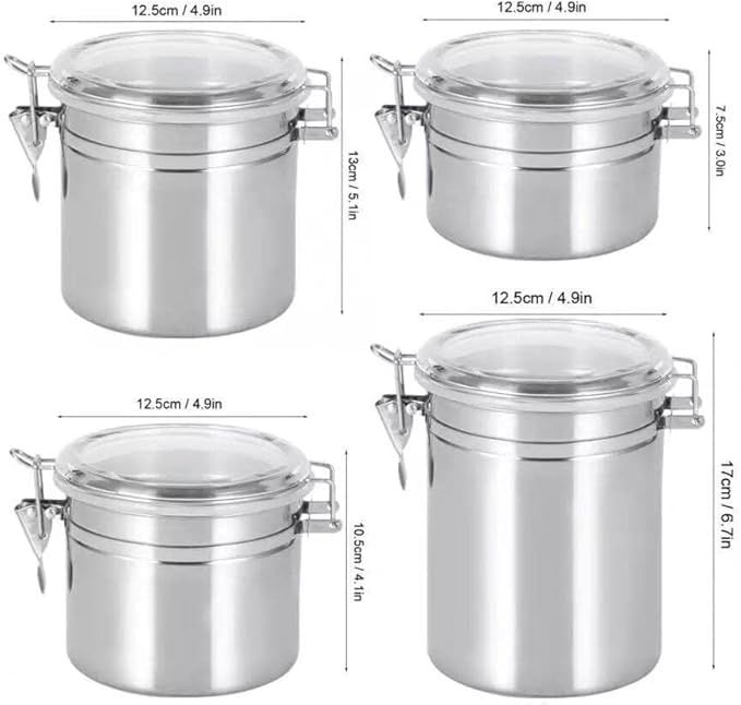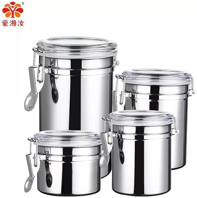 Next store - طقم علب حفظ طعام استانلس ستيل محكمة الغلق من Next store – 4 قطع – مع أغطية شفافة لحفظ الطعام طازجًا ومنظمًا في المطبخ أو أثناء التنقل