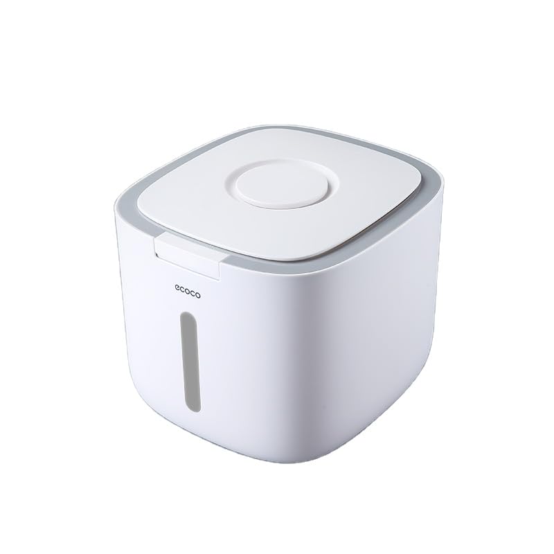 Next store - حافظة طعام أوتوماتيكية من Next Store لتخزين الأرز والحبوب بغطاء محكم الغلق مقاوم للرطوبة والحشرات، تصميم مبتكر مع آلية ضغط عملية للحفاظ على الطعام طازج (ابيض / رمادي)