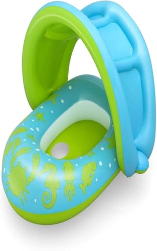 Next store - عوامة سباحة من Next Store للأطفال مع مظلة شمسية، قارب جلوس قابل للنفخ بمقعد مريح وفتحات أرجل، طوف آمن وممتع للرضع والصغار، حماية من الشمس، مثالي للمسبح