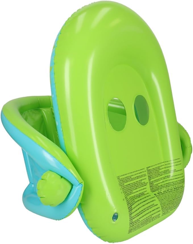 - [مقعد جلوس آمن ومريح]: تأتي العوامة بمقعد مدمج مزود بفتحات للأرجل، يتيح للطفل الجلوس بثبات داخل الماء مع حرية في الحركة، مما يمنحه شعورًا بالأمان والاستقرار أثناء السباحة.