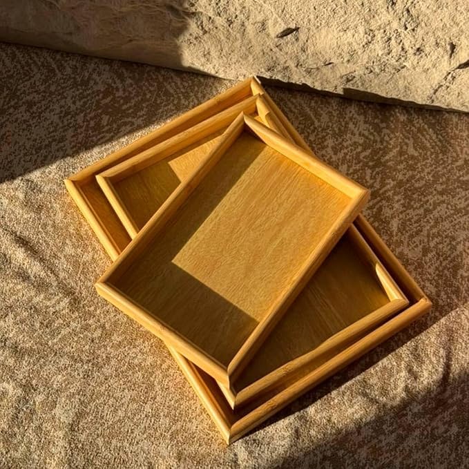 - [ثلاث مقاسات مختلفة] : يحتوي الطقم على 3 صواني بأحجام متنوعة لتلبية احتياجاتك اليومية من تقديم، ترتيب، أو تنظيم الأدوات بسهولة.