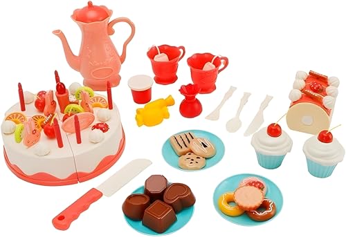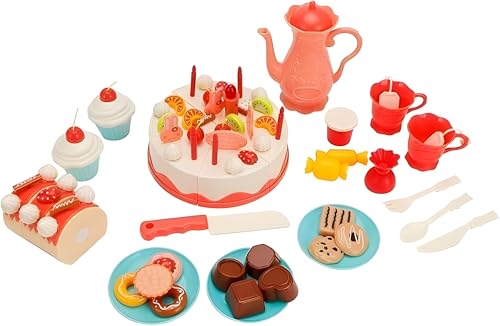 - مجموعة متكاملة مكونة من 82 قطعة – تتضمن كعكة عيد ميلاد قابلة للتزيين، فواكه وهمية، شموع، سكاكين، وديكورات متنوعة لإضفاء مزيد من المرح والإبداع.